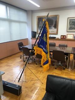 本校の正面玄関前にある国旗等は野球部の部員が毎日上げ下げしてくれています。今日は朝の打ち合わせが早く終わりタイミングが良かったので、感謝を伝え、写真を撮らせてもらいました。