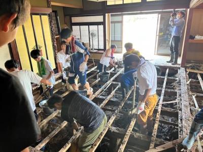 4日に小松市社会福祉協議会に連絡し、8月5日、中海地区の浸水した地域の泥の掻き出し作業や木くずの処理の手伝いなど約2時間の活動を行いました。(本活動は、1人・1団体あたりコロナ感染や熱中症予防も兼ねて活動時間を2時間程度に制限しています)