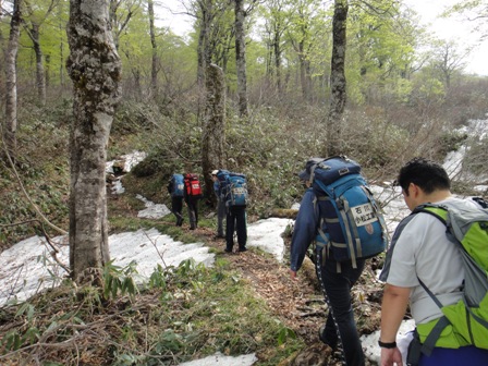 白山釈迦岳 投稿日時 : 2012/05/20 山岳顧問 ブナ林がとても綺麗 雪の斜面はとても歩きづらい 頂上を目指して登ります 0 {{options.likeCount}} {{options.likeCount}}