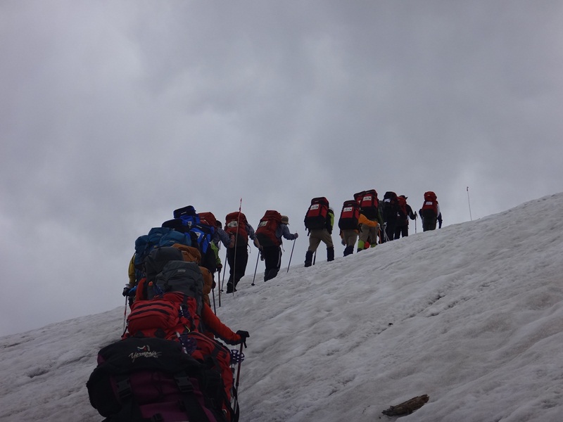 大会二日目。この日より登山行動開始。この日は乗鞍岳コースでルールはチーム行動。