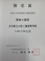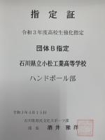 令和3年度 石川県高校生強化指定校として、少林寺拳法部が団体A指定に、ハンドボール部が団体B指定に選ばれました。ともに、全国大会での実績が評価された形です。先日、石川県庁にて、指定証の交付式が行われました。