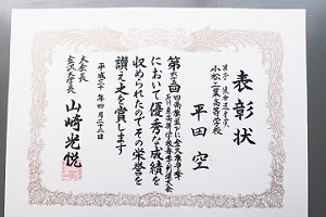 春季剣道大会優秀選手賞受賞 投稿日時 : 2018/04/22 校長 4月22日(日)金沢大学体育館で行われた高等学校春季剣道大会で、本校1年の平田空君が見事7人抜きを果たし、優秀選手賞を受賞した。 Tweet {{options.likeCount}} {{options.likeCount}} 0 コメント