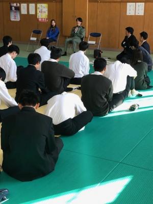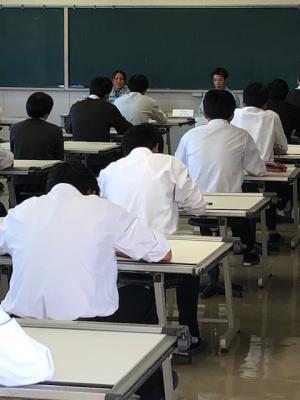 11月1日(水)に、本校各学科の若手OBを招いて3年生を対象に職業講話(意見交換会)を開催いたしました。OB方には、社会人としての責任感や将来の夢、仕事を通じて得た実体験、これからの過ごし方など、熱心に語っていただきました。3年生にとっては身近に迫った社会人生活がどのようなものか、おおいに参考になったことでしょう。