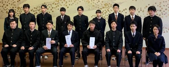 去る3月10日(日)、本校生徒会代表者2名が、加賀地区の高校が連携して行っていた募金の授与式に参加しました。各学校で独自に行っていた募金、および3月3日(日)に小松駅にて合同で行った募金を被災した能登地区の高校生にお渡ししました。募金は損壊した校舎の補修等に使用される予定です。