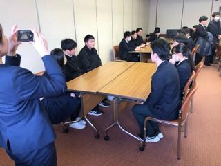 贈呈式の後、3つのグループに分かれ交流会が行われ、最初はぎこちなく話していましたが、すぐに打ち解け笑顔も見え、連絡先を交換する姿もありました。