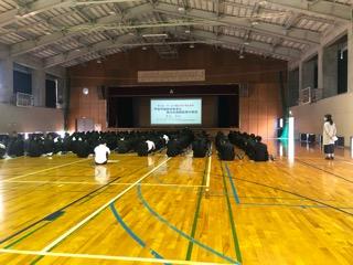 6限は体育館で表彰伝達式と生徒総会を行いました。表彰伝達式は春休みから現在にかけての大会で入賞を果たした生徒が自分で全校生徒の前で披露し、最後に賞状を私が受け取る形式で行いました。全校生徒に拍手され選手のみんなは励みになったことでしょう。その後、レイアウトを素早く変更し生徒総会にうつりました。コロナの影響で昨年度までしばらくの間、教室にてリモートで行ってきたのですが、今回従来の形式に戻しました。会はスムーズに進み拍手で承認されました。会に先立って生徒会課主任より、会の概要や意義の説明もあったこともあり、生徒各自が真剣に参加したよい総会であったと思います。