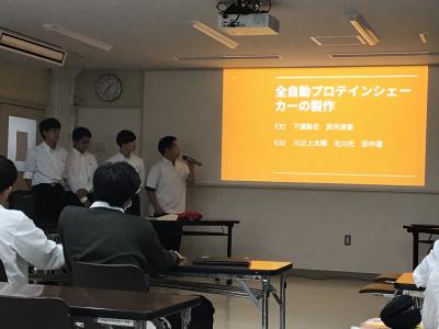 電気科3年生が課題研究の中間発表を行いました。生徒達はこれまでの研究成果を一生懸命に聞き手に伝えていました。