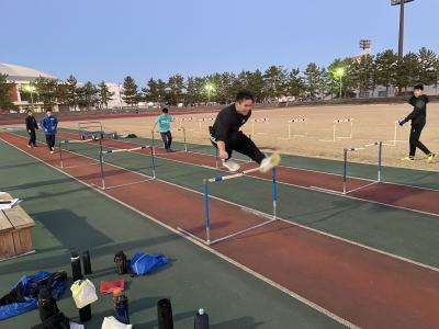 動きづくりと走り込みのトレーニングをするために練習に参加しました。7月以来、久しぶりです。前半はハードルを使ったダイナミックな動きとリズム、後半は50mや150mを短距離陣の背中を追いかけて走りました。締めには、バーベルを使って補強トレーニングも行いました。こうしたトレーニングを積極的に行い、ウエイトリフティングへ繋げていきます!!陸上競技部の皆さんありがとうございました!