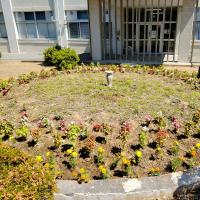小松市の「花のまちづくり推進団体」として、本格的に本校正面玄関前の花壇づくりを始めました。