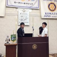 私たちインターアクト部の活動を、いつもご支援いただいている小松ロータリークラブの例会に、部員4名が参加しました。