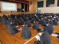 3月24日、第3学期の終業式が体育館で行われ、島村校長先生が生徒に対して高校生活において目標をもつことの重要性をお話されました。