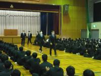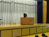 3月24日、第3学期の終業式が体育館で行われ、島村校長先生が生徒に対して高校生活において目標をもつことの重要性をお話されました。