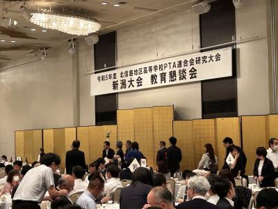 7月14日(金)、令和5年度北信越地区高等学校PTA連合会研究大会が新潟県で開催され、PTA役員と職員が参加しました。開会式、全体会、教育懇談会に出席し、他校のPTAの方々と交流を深め、PTA活動における有意義な情報交換の機会となりました。