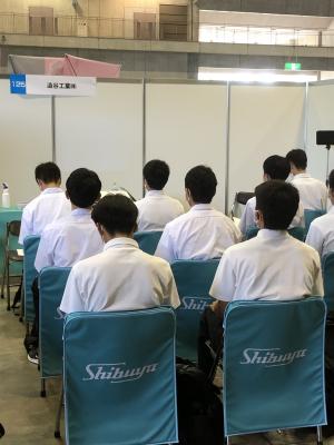 7/8に県の産業展示館4号館において、令和5年度の県内企業が多数参加し企業ガイダンスが行われました。本校からは3年生117名が参加し、加えて保護者の方々もいらっしゃいました。生徒は将来の進路を見据え、企業担当者の説明を真剣に聞いていました。