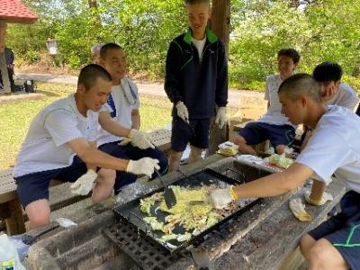 回収したゴミは、可燃ゴミと不燃物ゴミに分別し、PTA役員の方々のご協力を頂き、エコロジーパーク小松へ搬入しました。到着後は、クラス写真を撮り、班ごとに焼きそばを作り親睦を深め、楽しい思い出となる1日となりました。