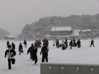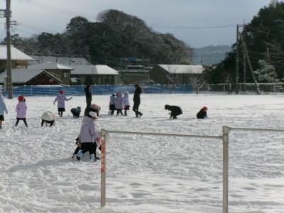 雪が降って、たくさんの雪だるまが運動場に。小丸山タイム(長休み)や昼休みになると、こぞって運動場に出て遊ぶ小丸山っ子。元気いっぱいです。