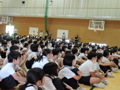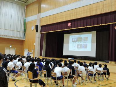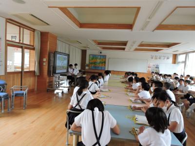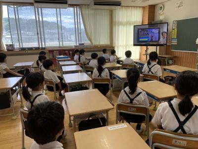 9月1日(金)始業式(各教室でオンライン)を行いました。西田研究主任による学びの話すや三宅栄養教諭による食の話もありました。