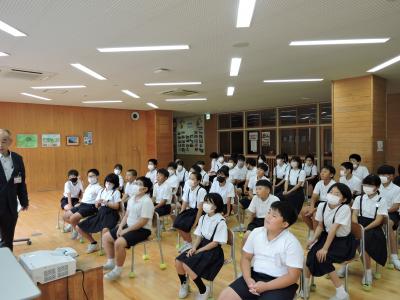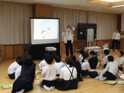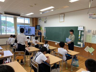 6月15日(木)4年生が防災教室を行いました。市役所の防災課の方から防災の種類や自分の命は自分で守ることの大切さを教えていただきました。