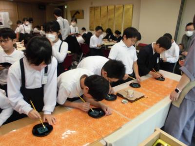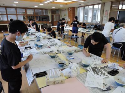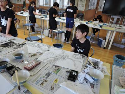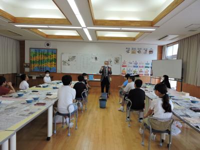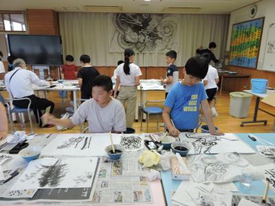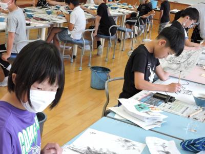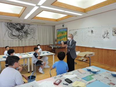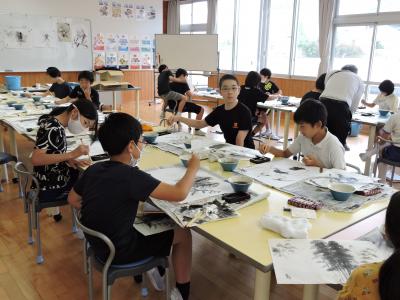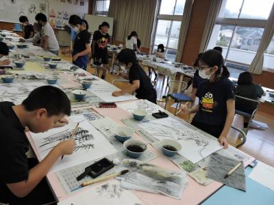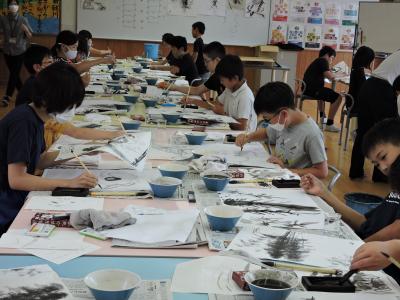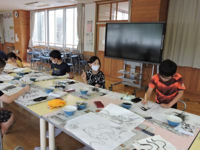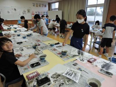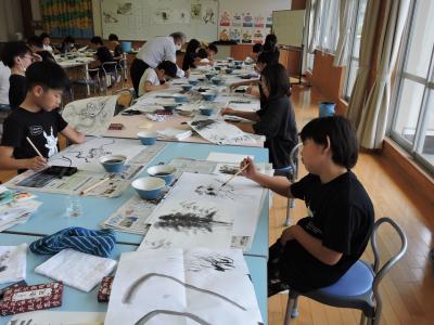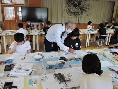 6月16日(金)小丸山小学校の元校長先生でもある橋元道彦先生を講師にお迎えし、水墨画体験をしました。自分で墨をすり、模写しました。長谷川等伯のことを学んでいる5年生によって、よい体験となりました。