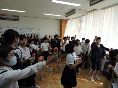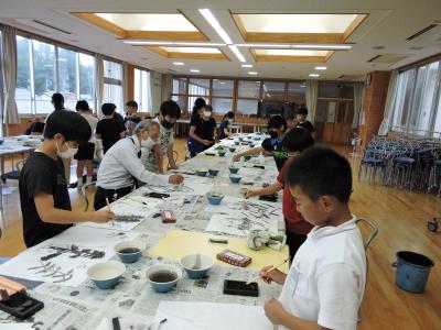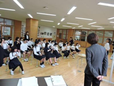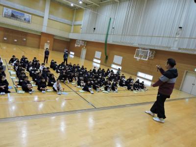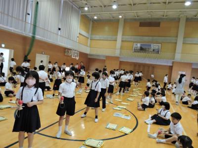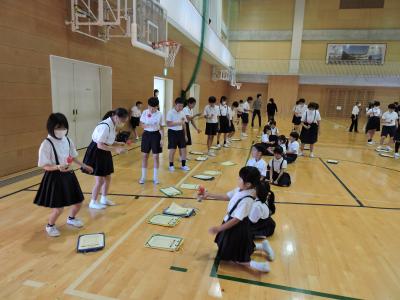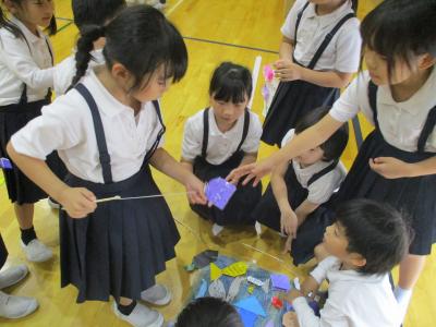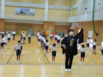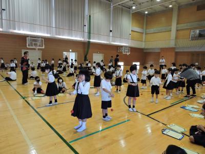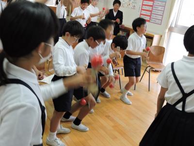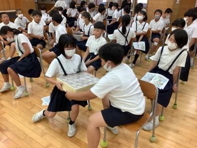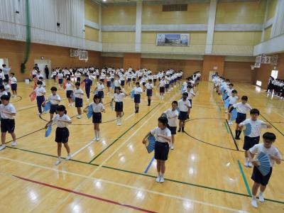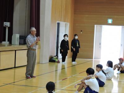 9月22日、5年生は、七尾まだら保存会の方々から七尾まだらを教えて頂きました。今年は全校集会で全校児童に披露する予定です。