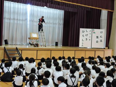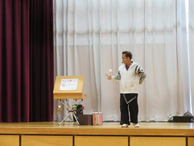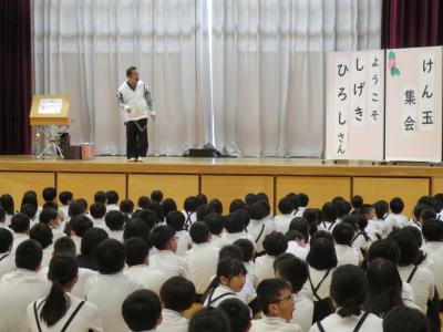 11月13日(月)今年度2度目 けん玉名人のしげきひろしさんが来校しました。子供達はけん玉検定にもチャレンジしました。