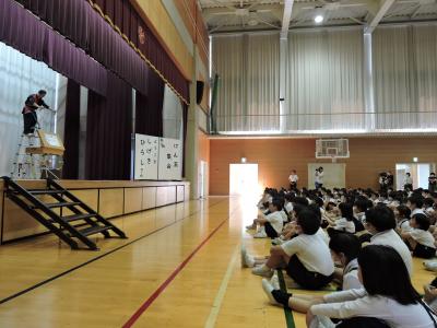 6月19日(月)けん玉名人のしげきひろしさんが9ヶ月ぶり2度目、小丸山小学校でパフォーマンスを披露してくださいました。昨年は6年生以外はリモートだったのですが、今回は全学年が生でしげき名人のすご技を見ることができました。また、子どもたちはけん玉検定にもチャレンジしました。
