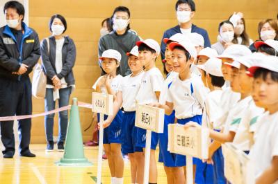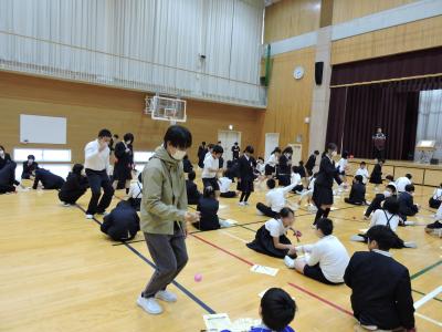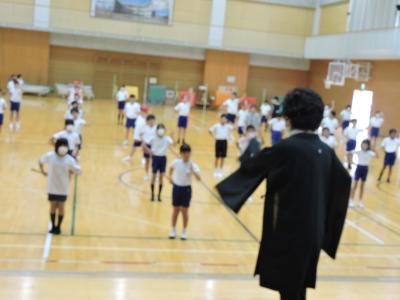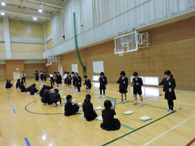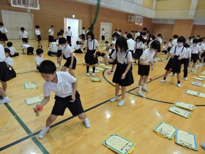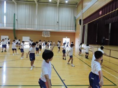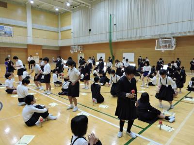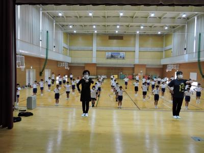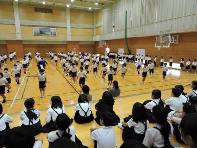 10月30日(月)延期になっていた小丸山会場での器械運動交歓会が行われました。小丸山会場には、小丸山小学校の他に田鶴浜小学校、朝日小学校、中島小学校、能登島小学校が集まりました。