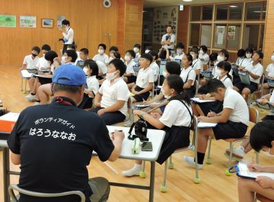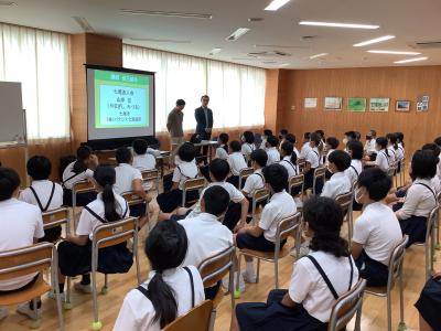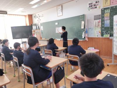 6月15日(木)6年生の総合的な学習の時間「みんな大好き Love Nanao Project」で七尾市長 茶谷義隆様に続き、本校の卒業生でもある株式会社どんたくの大西忠部長に食の魅力について語っていただきました。6年生は興味津々でした。
