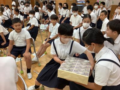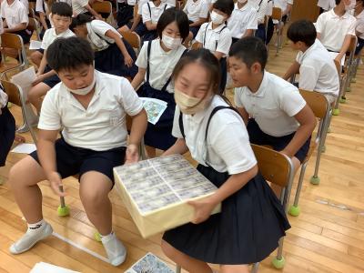 6月23日(金)6年生対象の租税教室がありました。税がどのように使われているのかを学びました。6年生は、1億円のレプリカを手にし歓声をあげていました。