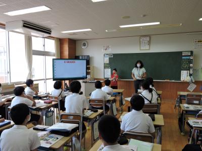 6月28日(水)、ALTのニコル先生の甥っ子のジェイドウン(Jeyden)くんがアメリカから小丸山小学校にやって来ました。5・6年生の授業に参加し交流しました。