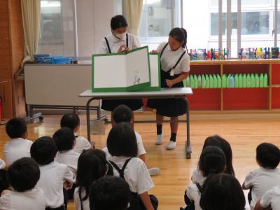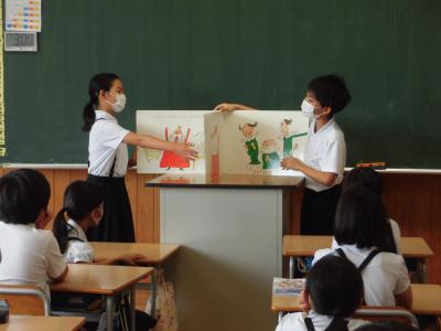 7月11日、図書委員会による読み聞かせがありました。図書委員のみなさんはみんなに喜んでもらおうと一生懸命読んでくれました。