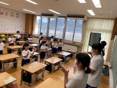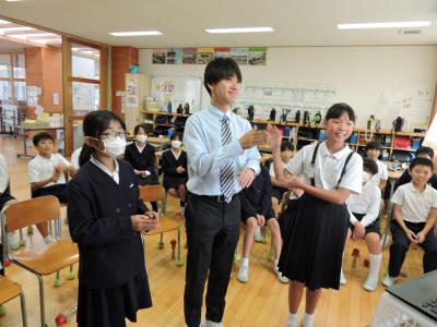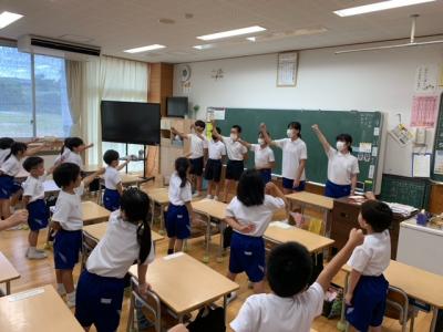 9月21日、6年生が応援合戦の仕方を教えに各教室へ出向きました。