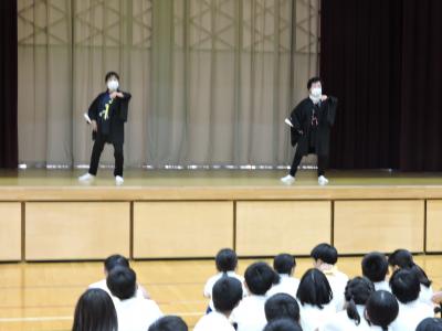 11月2日(木)5・6年生は、お世話になった七尾まだら保存会の方をお呼びに、七尾まだらを披露しました。