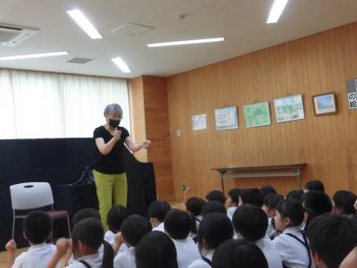 9月28日(木)1年生と3年生は、しびびの会の方に人形劇をして頂き、楽しみました。