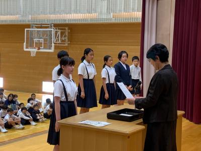 10月5日後期児童会の任命式を行いました。児童会役員・委員長が力強く自分の思いを伝えてくれました。