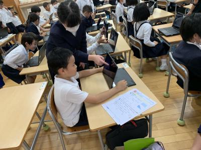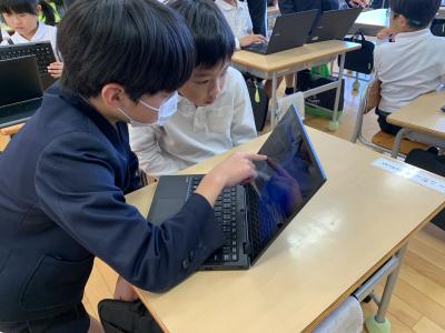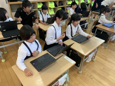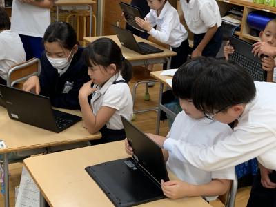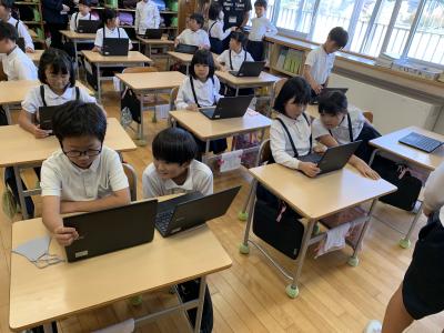 10月18日(水)一人一台パソコンを使用し、学びアップ集会を行いました。5・6年生が1~4年生の先生役になりました。