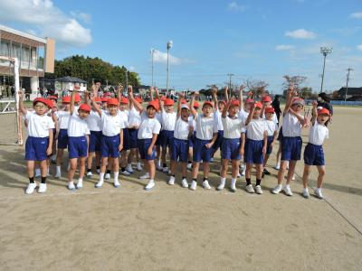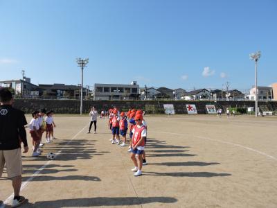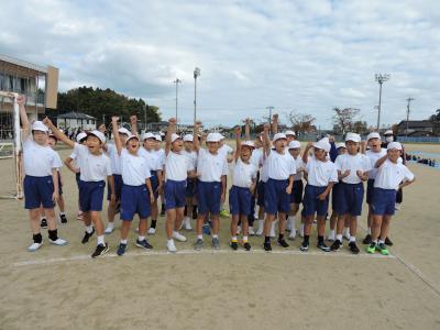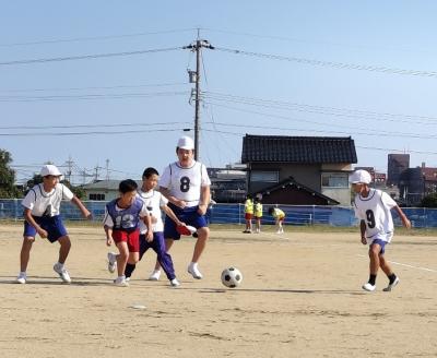 1日延期となった10月26日(木)、好天のもと、山王小学校の5年生とサッカー交歓会を行いました。