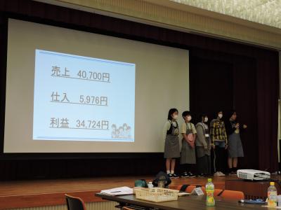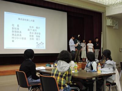 ジュニアエコノミーカレッジに小丸山小学校から2チームが参加しました。10月15日にはパトリア1階で実践販売がありました。10月29日にはまとめセミナーと決算発表会がありました。その結果、小丸山小学校の株式会社ハッピーバブルがグランプリを獲得しました。