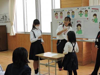 11月9日、4年生が手話教室を行いました。「あなたの好きな食べ物は何ですか?」「私の好きな食べ物はお寿司です」などのやりとりを学びました。