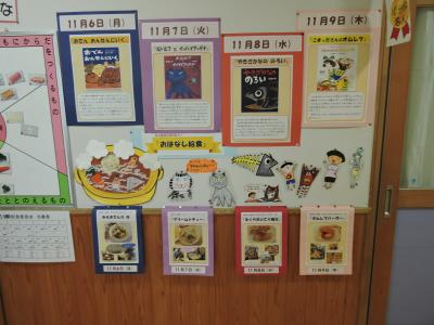 11月6日から9日の1週間、図書とコラボした給食が提供されました。給食の後は、本を見に来る子がたくさんいました。