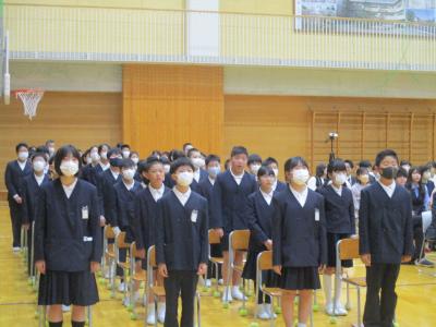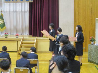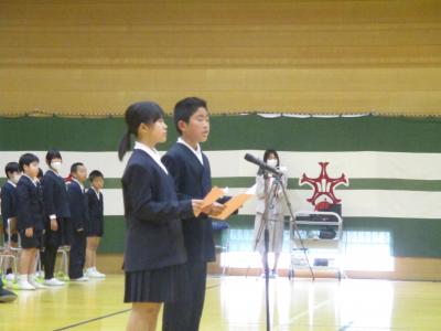 こちらも児童会役員が受け取りました。この後全校に広めていきます。