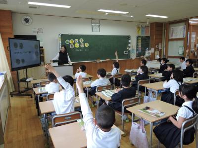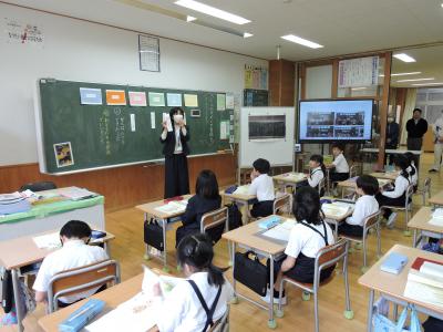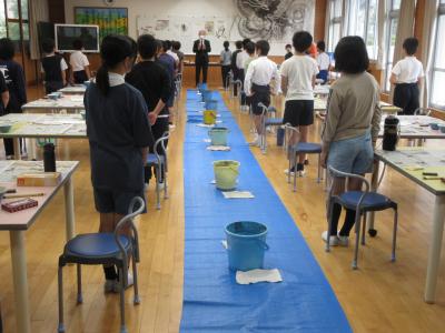 6月9日(木)七尾美術館の学芸員の北原さんと河野さんが、5年児童のリクエストに応え、作品の一部を学校まで持ち込み見せてくださいました。