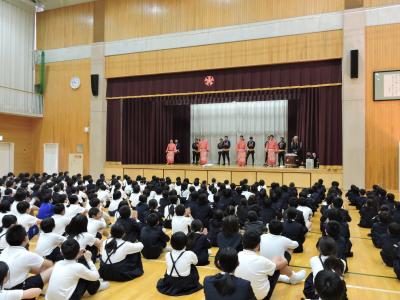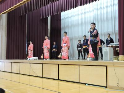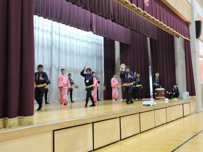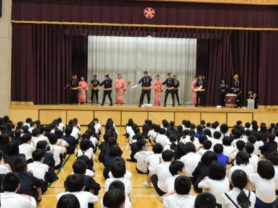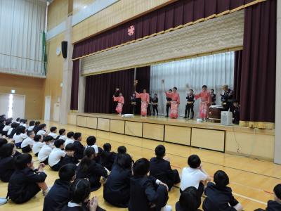 11月6日(水)5・6年生が集会でまだらを披露しました。お世話になったまだら保存会の講師の方にも見て頂きました。ありがとうございます。