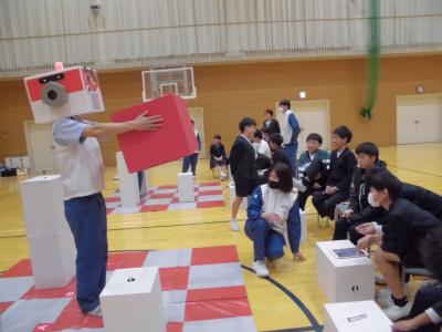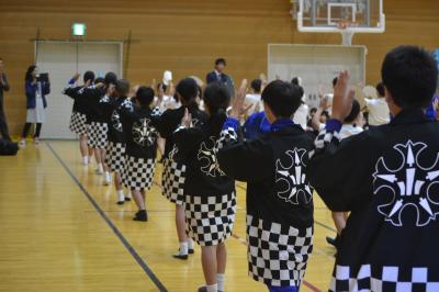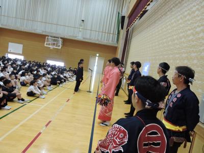 5月2日、魚町の若衆の方に来ていただき、でか山集会を行いました。「ワッショイ ワッショイ」「エイヤー エイヤー」の声が体育館に響き渡りました。来年の青柏祭が楽しみです。