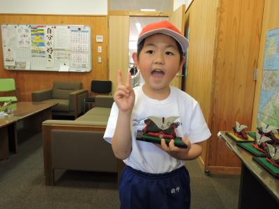 5月2日(木)岡山県の菊地さんらから寄贈して頂いたかぶとの抽選会が企画されました。