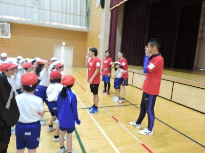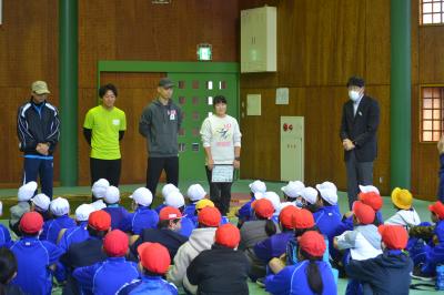 3月19日(水)突然の雪の中、サムライズの方4名が学校に来てくださいました。朝一番の挨拶と5年生と体育館でバスケットを楽しみました。サムライズのみなさん、ありがとうございます。22日と23日の試合も頑張ってください。応援しています。