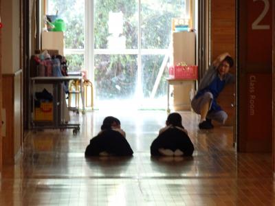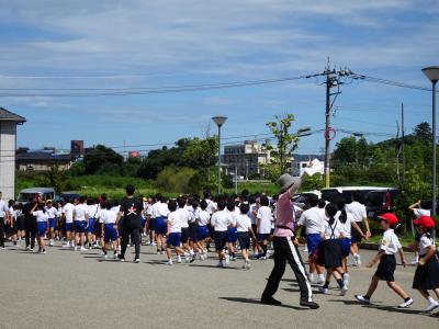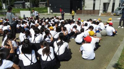 9月11日(水)昼休みに地震が発生し、さまざまな場所から避難する想定で訓練をしました。今回は運動場ではなく、玄関前に避難してみました。子供たちは臨機応援に対応できていました。