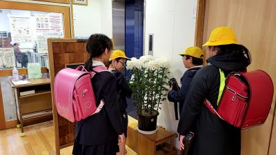 小丸山っ子に、菊の花と香りを楽しんで欲しいと、今年は白い菊を11月20日まで児童玄関に展示してくださっています。ありがとうございます。
