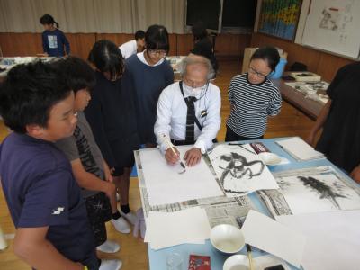 10月28日(月)と11月11日(月)元小丸山小学校校長の橋元道彦先生を講師にお迎えし、水墨画を習いました。墨すりから体験し作品を仕上げました。