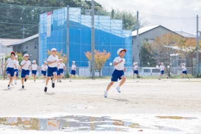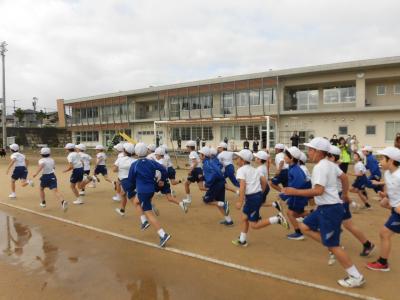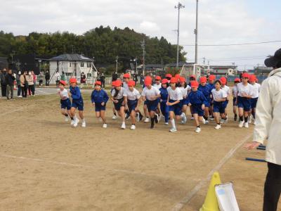 10月9日(水)グランドが新しく張り替えられた城山陸上競技場で七尾市の連合運動会がありました。100m走、幅跳び(選抜)、リレーが行われました。最後のリレーは雨が降ってきましたが、力いっぱい応援していました。